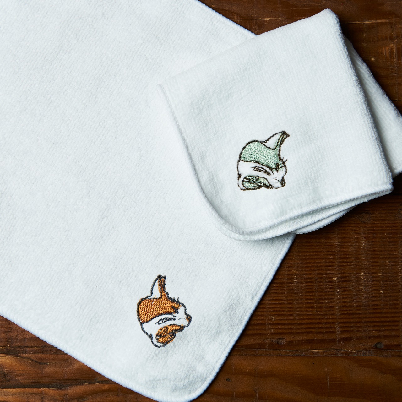刺繍猫カラー:オレンジ、グリーンの2種類
