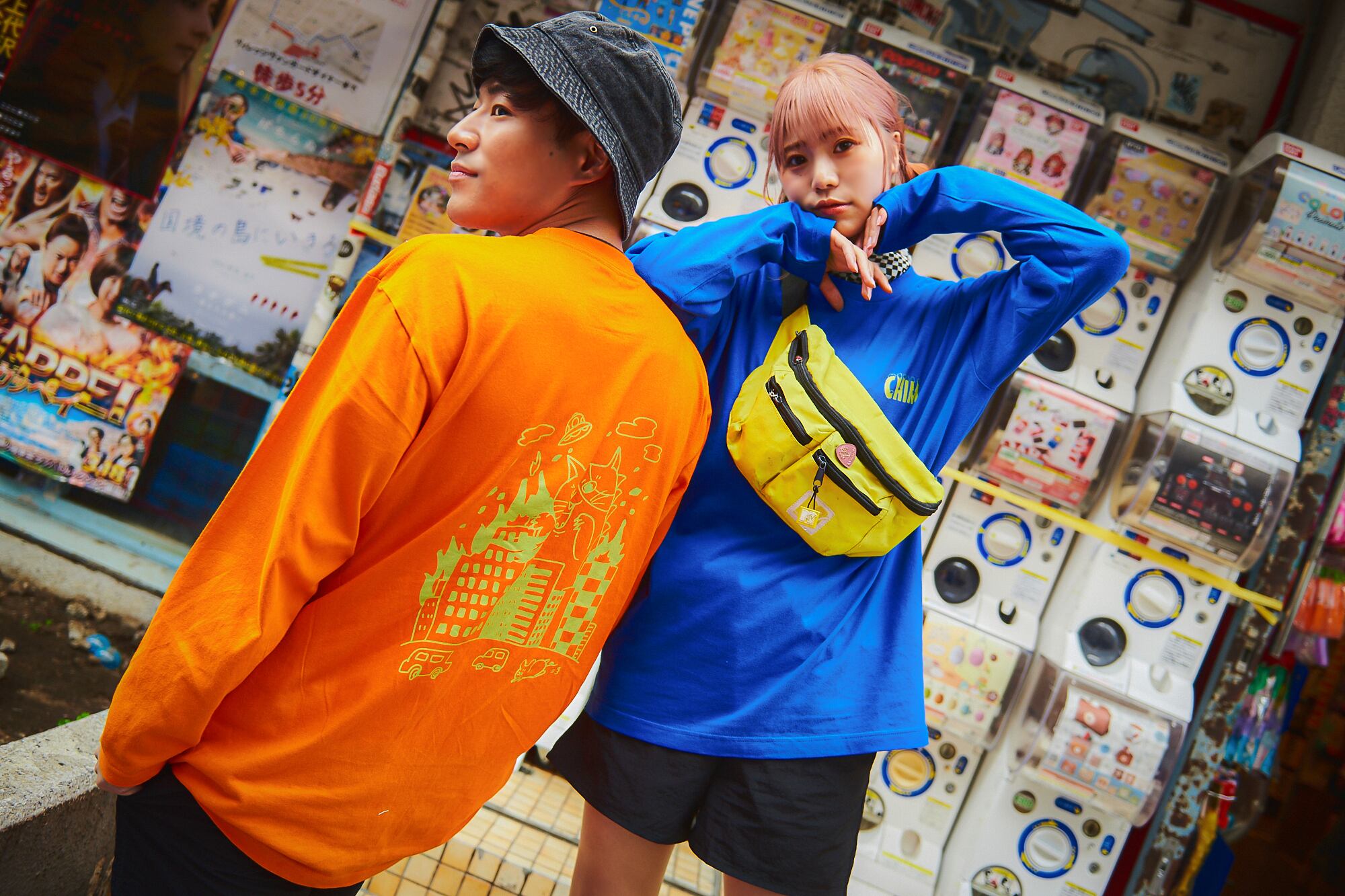 ブルーのカラーにはイエローでロゴとイラストをプリントしました◎